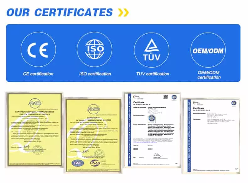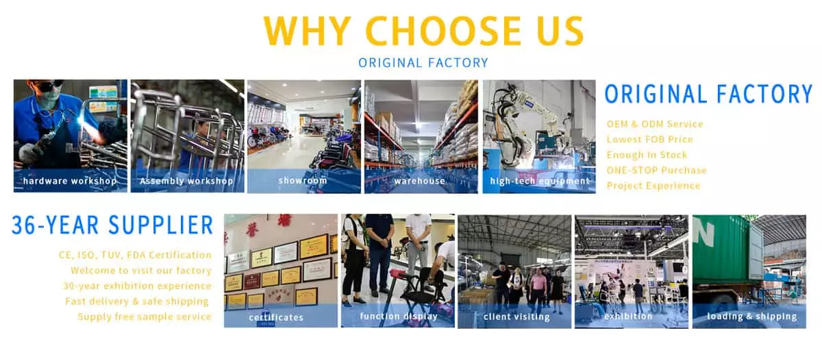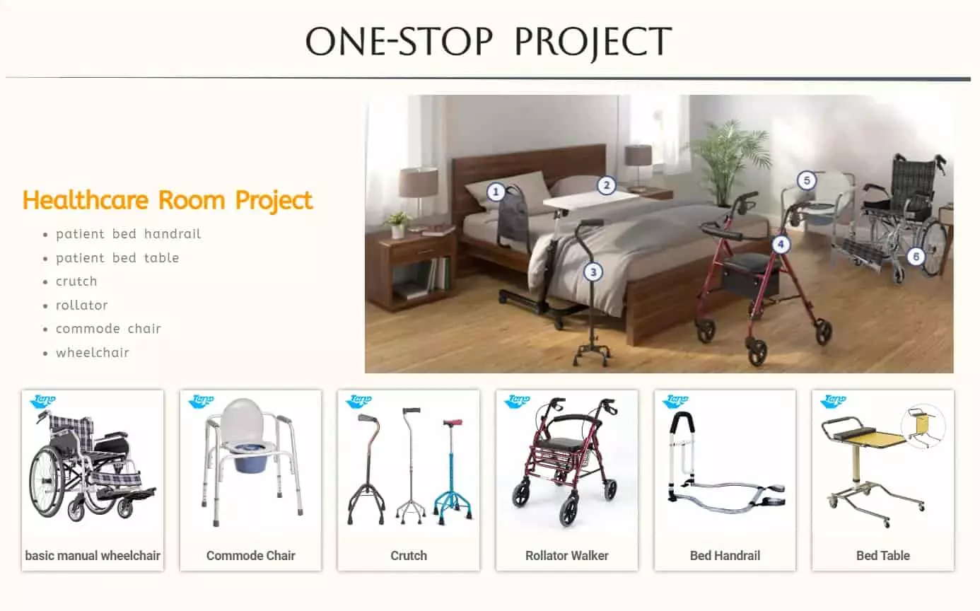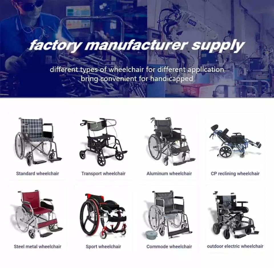 మాకు OEM & ODM ఉత్పత్తులను సరఫరా చేస్తుంది Sటీల్ చక్రాల కుర్చీ, అల్యూమినియం వీల్ చైర్, పిచక్రాల కుర్చీ,Wఆల్కర్, సిగుట్ట, వాకర్ రోలేటర్స్, Commode కుర్చీ, షవర్ కుర్చీ,ఆసుపత్రి మంచం, స్కూటర్, రోబోట్ మరియు ఇతర మెడ్ టెక్ పునరావాస పరికరాలు,